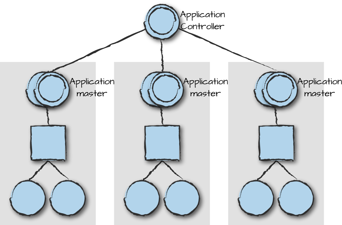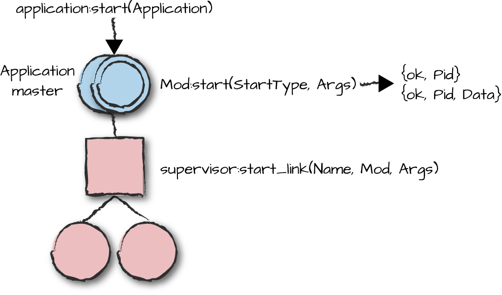 Behind the scenes in the Erlang VM a process called the application controller starts on every node. For every OTP application, the controller starts a pair of processes called the application master. It is the master that starts and monitors the top-level supervisor and takes action if it terminates (Figure 9-2).